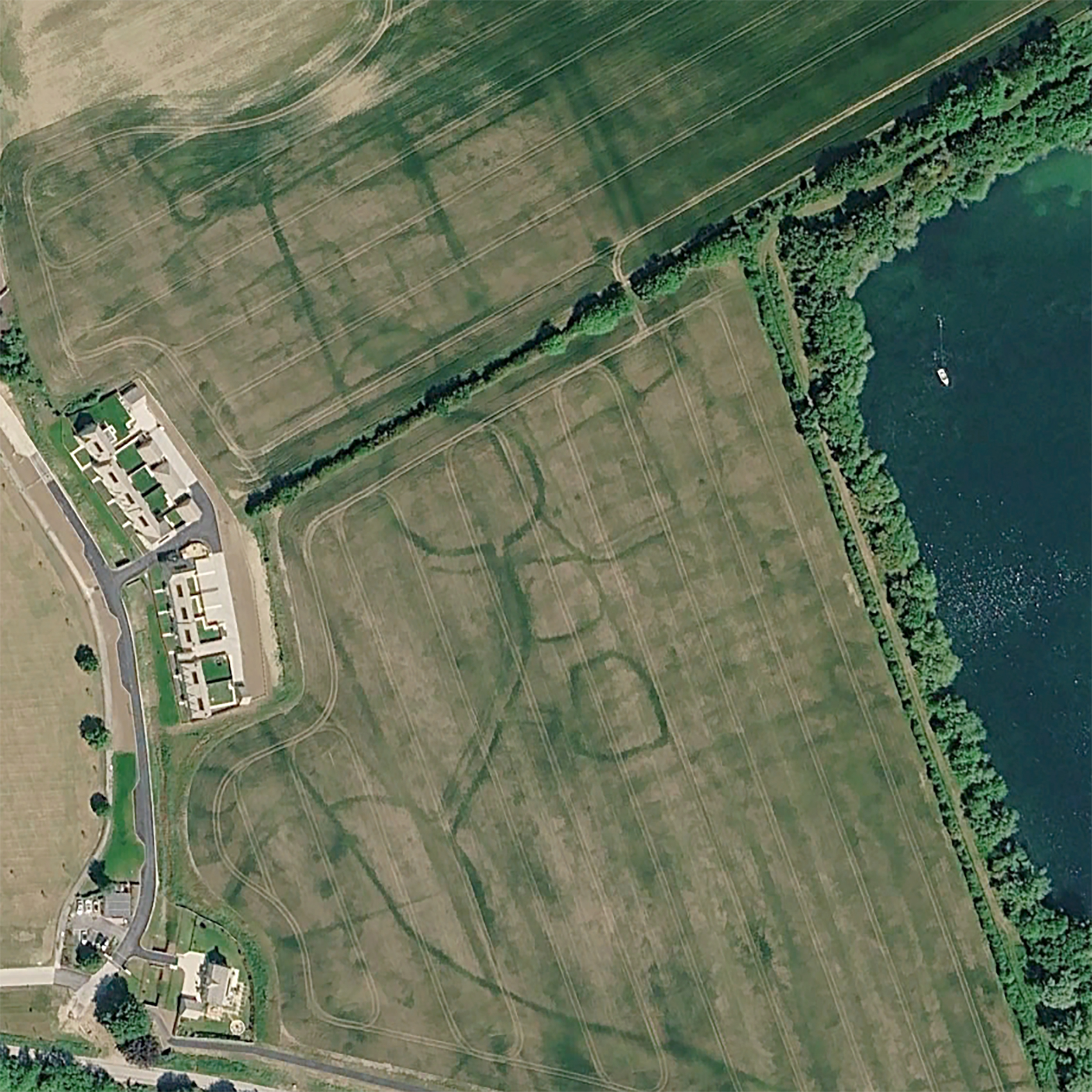 Figure 1: An Airbus image showing what archaeological features can be seen under optimal conditions. A probable prehistoric enclosure showing as differential growth in a crop located near Ashton Keynes, Wiltshire © Airbus DS 2025