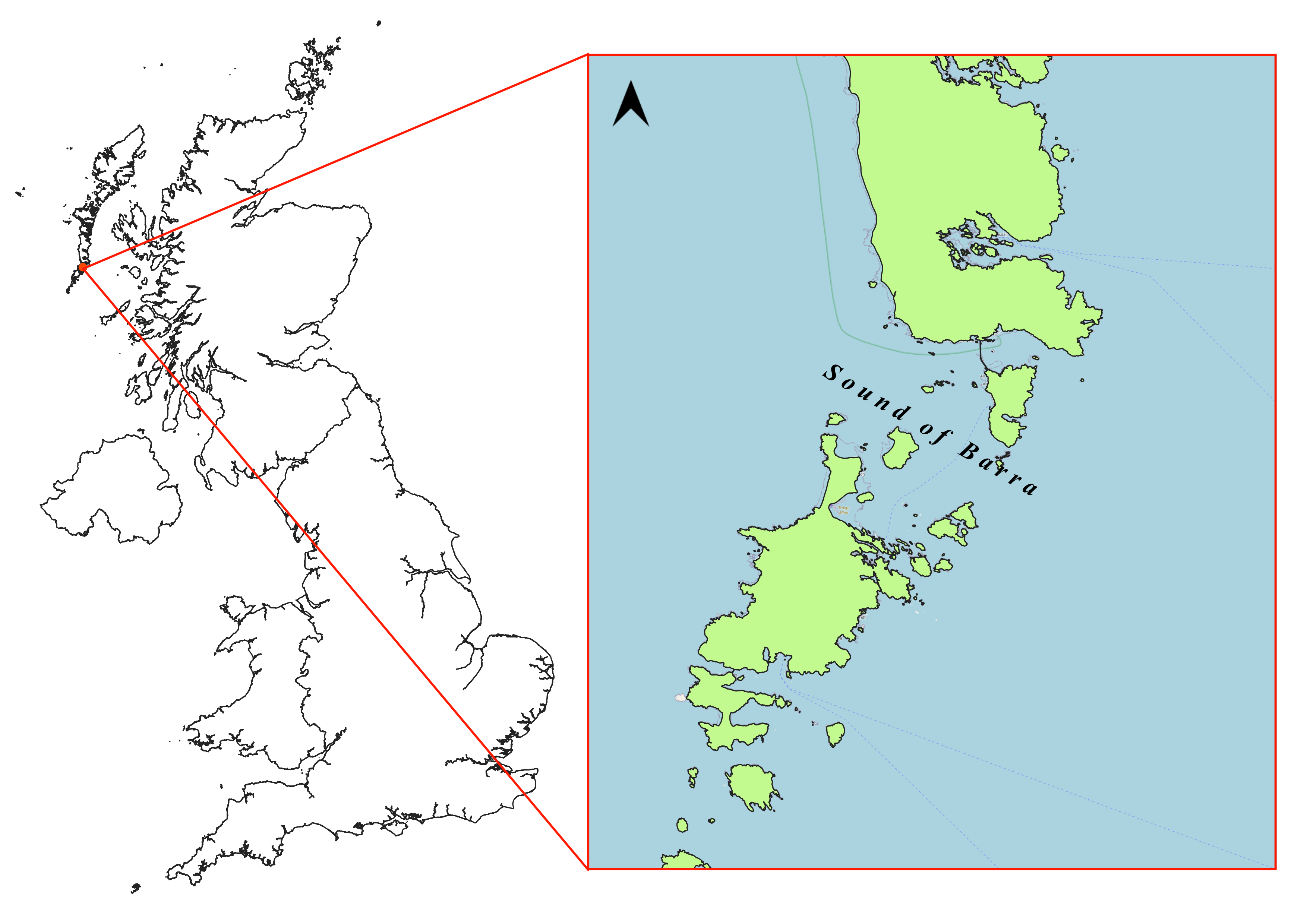 Figure 2: Map of area of interest in Sound of Barra, Outer Hebrides, Scotland