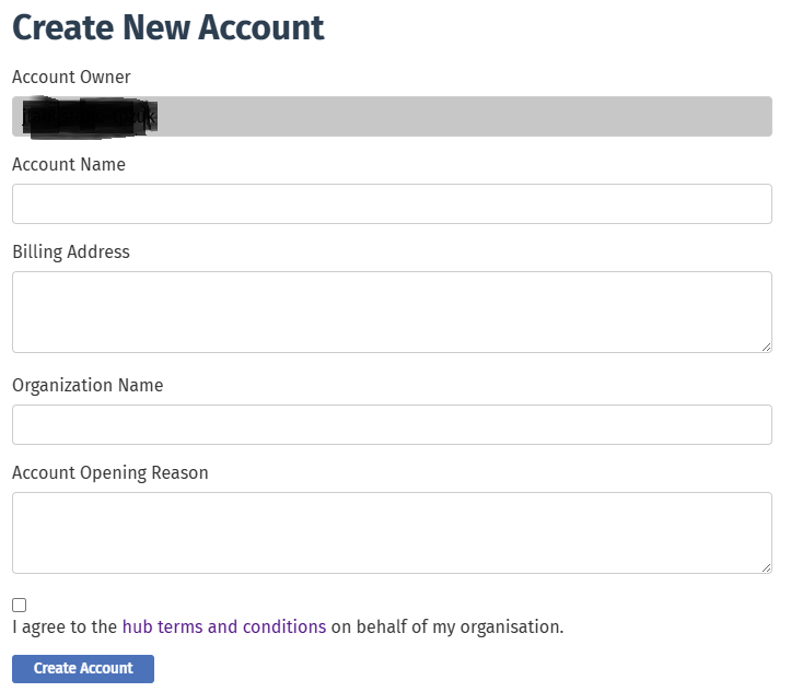 Once submitted, your billing account request will be sent for moderator approval. This is expected to take up to 2 working days. After it is approved, you'll be able to create and manage your own workspaces. You will receive a notification via the email associated with your user account when your request has been processed. If you cannot see the email, please check your junk mail folder.