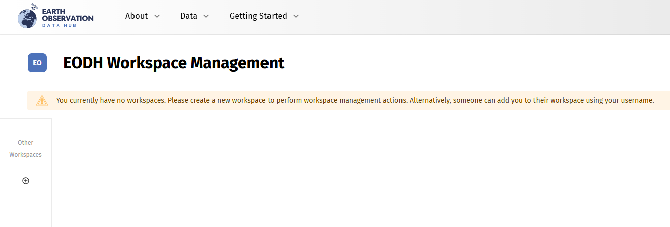 To create a workspace click on the Workspaces page in the top nav bar. Then click the '+' icon as shown below.