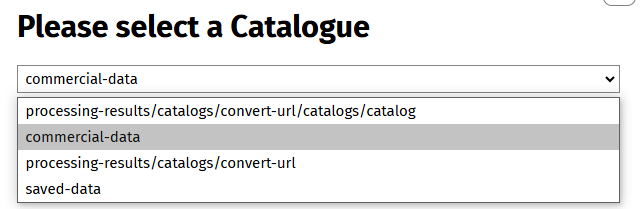 The first step is to select the Catalog in which you wish to load your new STAC metadata. The available catalogs in your workspace will be listed in the drop-down, in descending order of depth. Select the Catalog in which you wish to load your STAC metadata.