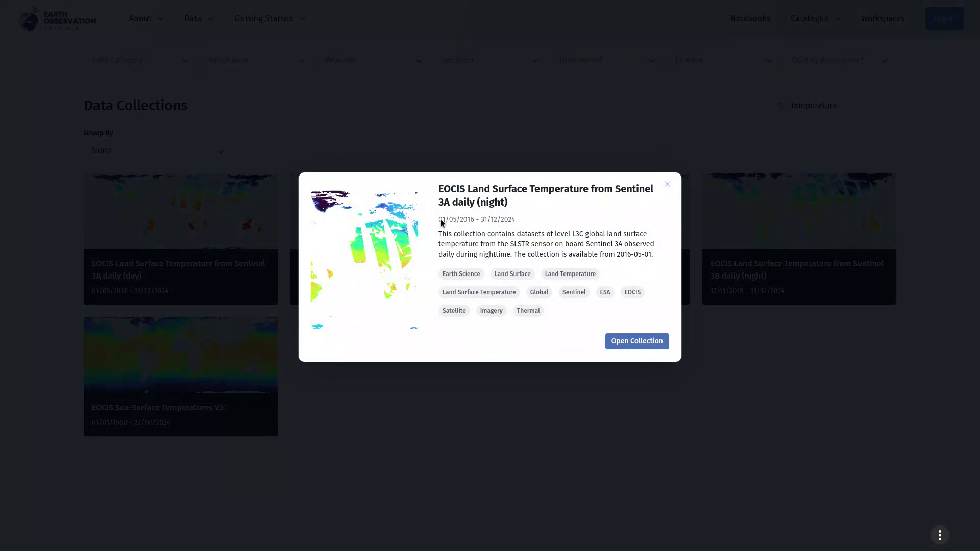 The Resource Catalogue provides a user-friendly interface for discovering and accessing Earth Observation data. This guide walks through the basic features of the catalogue's browse page and how to use its filtering and search capabilities.