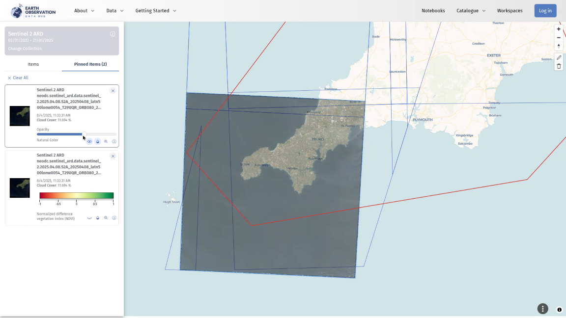 Zoom in on the map. The scene list will automatically update to show only data for the visible area.
