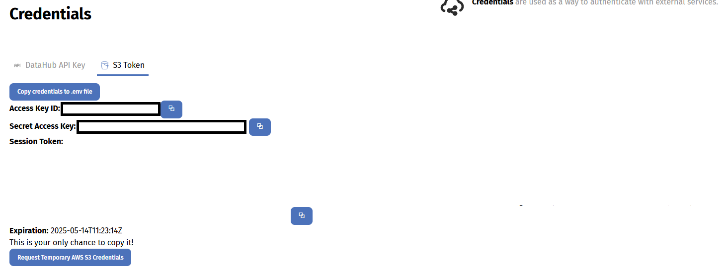 This guide explains how to use the temporary S3 credentials provided by our platform. Whether you prefer the command line or a bit of Python, we’ve included examples to help you get started quickly.